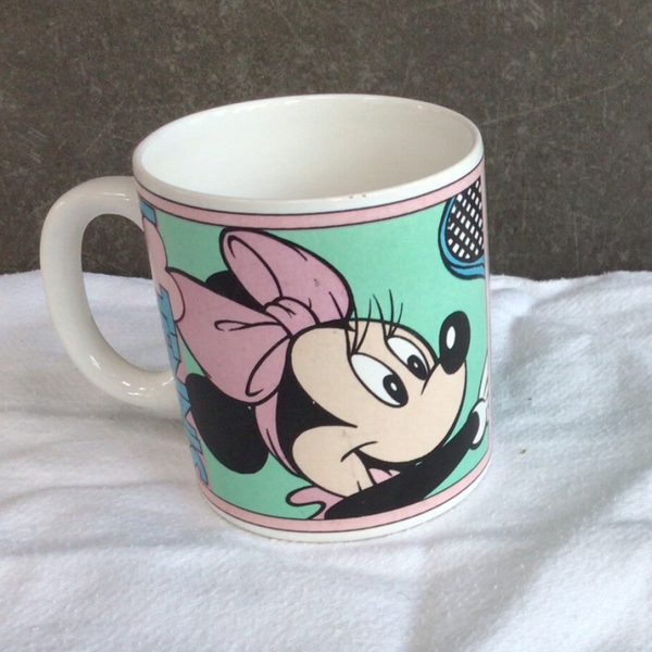 Disney Mok Mini Mouse Tennis . Collectors Item. Vintage. Ook Mickey Mouse variant aanwezig uit dezelfde serie